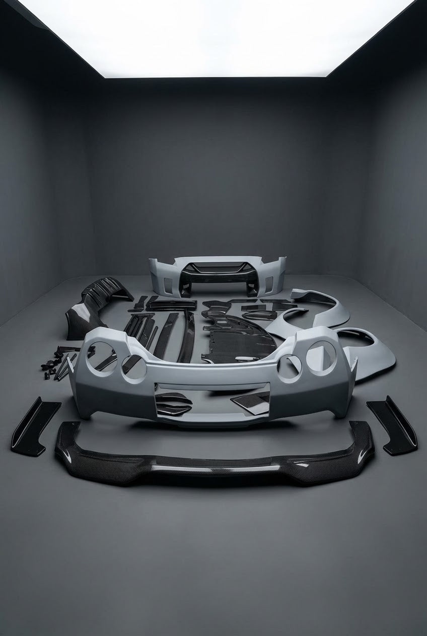 We offer premium Nissan GT-R body kits, featuring splitters, diffusers, side skirts, bumpers, widebody kits, and GT wings. Designed for maximum performance, these components improve downforce, stability, and the GT-R’s aggressive stance. Available in fiberglass, PP plastic, and carbon fiber, each part ensures superior fitment and striking visual impact, transforming your GT-R with high-quality aero enhancements engineered for precision.