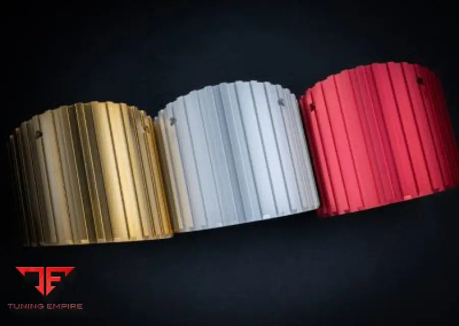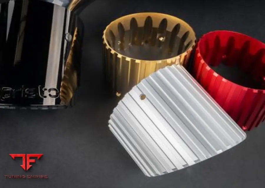 CAPRISTO PORSCHE 992 GT3/GT3 RS EXHAUST SYSTEM Rear silencer for use with the OEM actuators, colored anodized tailpipes angled, in red, silver, black, gold* and aluminum outer sleeve in wicrom black.