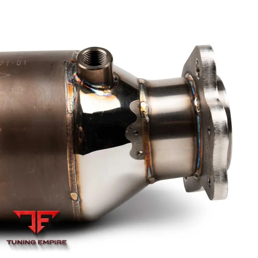 - Weight savings of 9lbs / 4kg compared to the stock catalytic converter