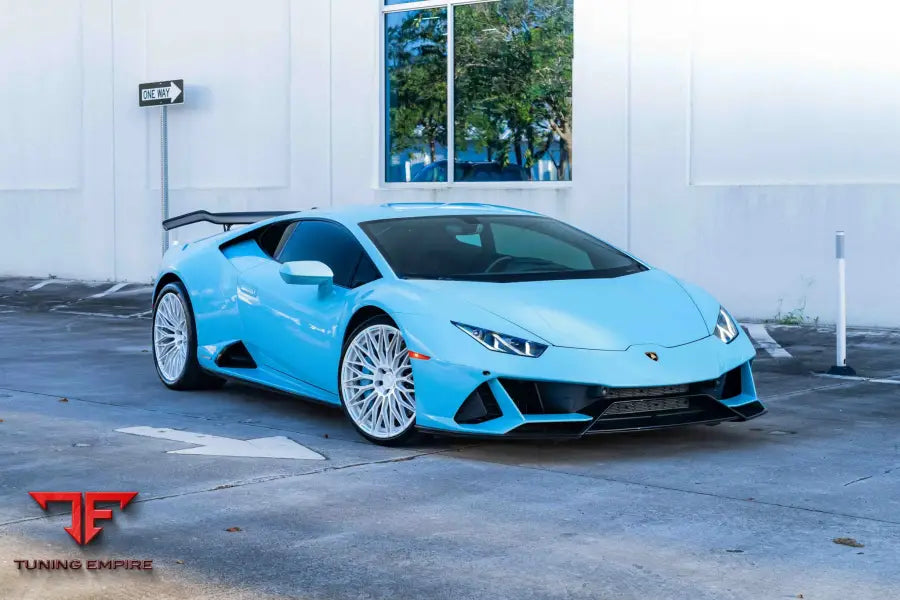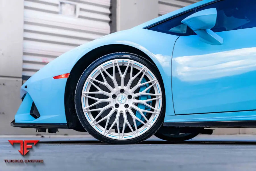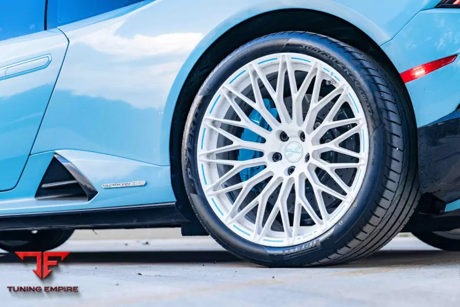LAMBORGHINI HURACAN EVO FORGED WHEELSWheel Model: SV05Front Wheel Size: 20x9Rear Wheel Size: 20x11Wheel Finish: Pearl Sparkle with Gloss ClearText Fill: Cap Logo, Grooves, and Texts Filled in Light Blue