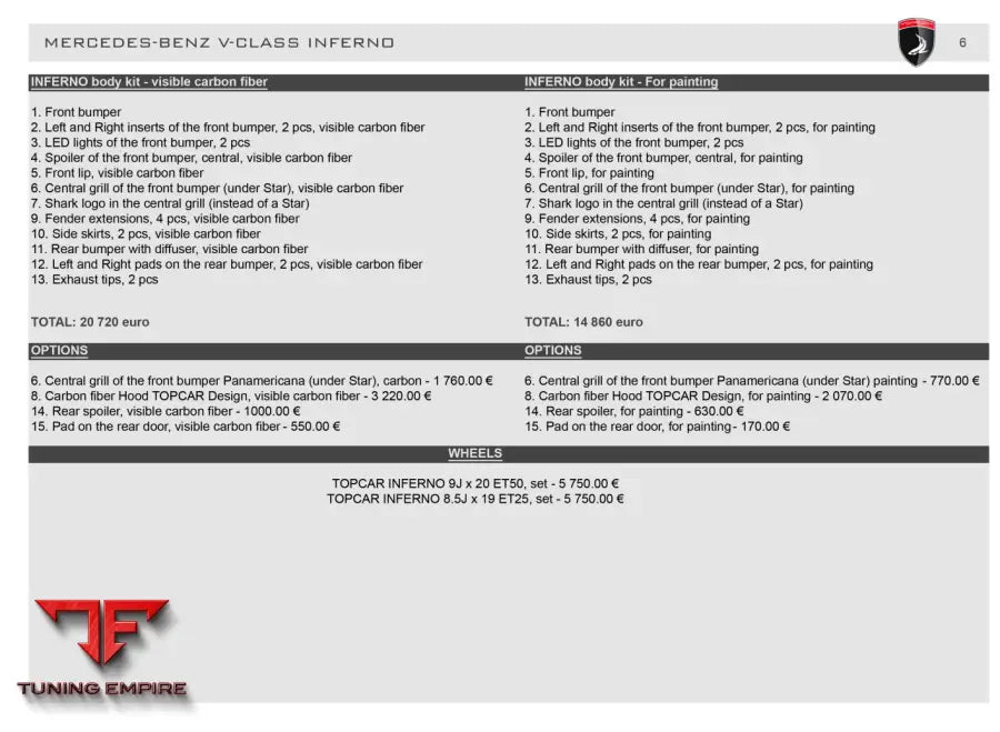 TOP CAR MERCEDES-BENZ V-CLASS - INFERNO body kit - For painting